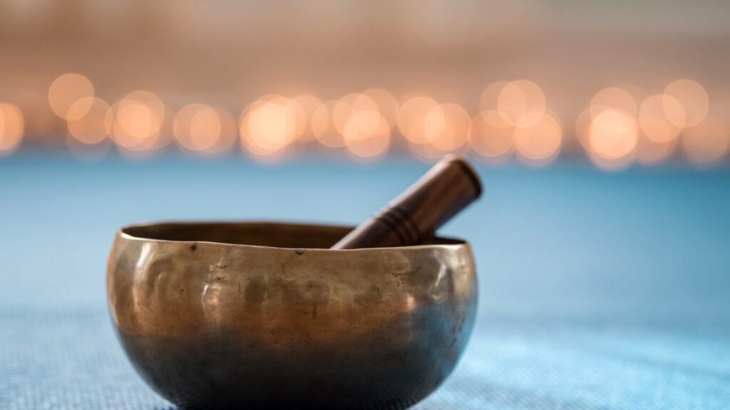 レッスンの最後には、チベット発祥のシンギングボウルの音の余韻の中で、深い休息の時間も。
